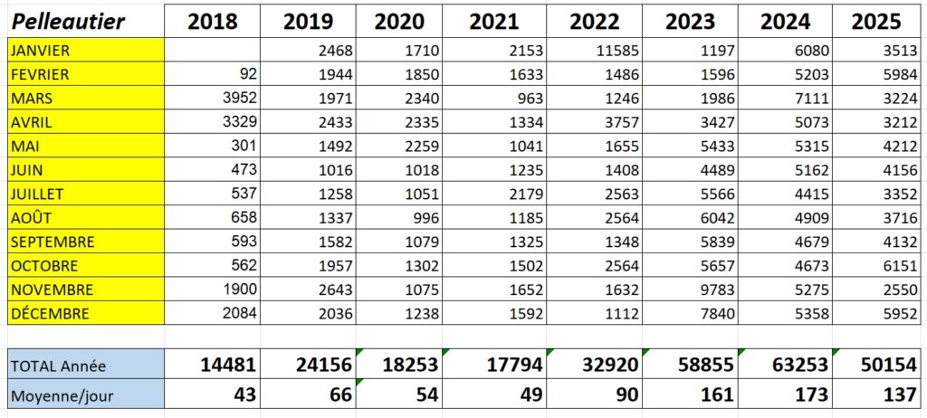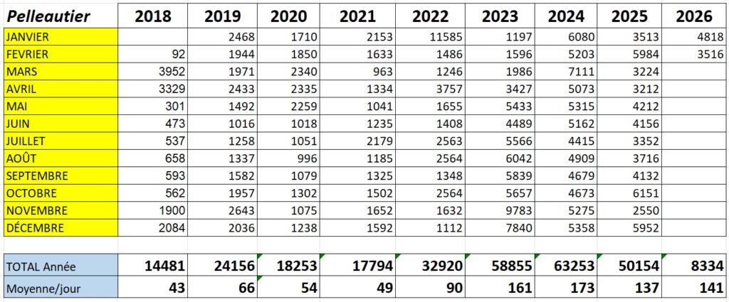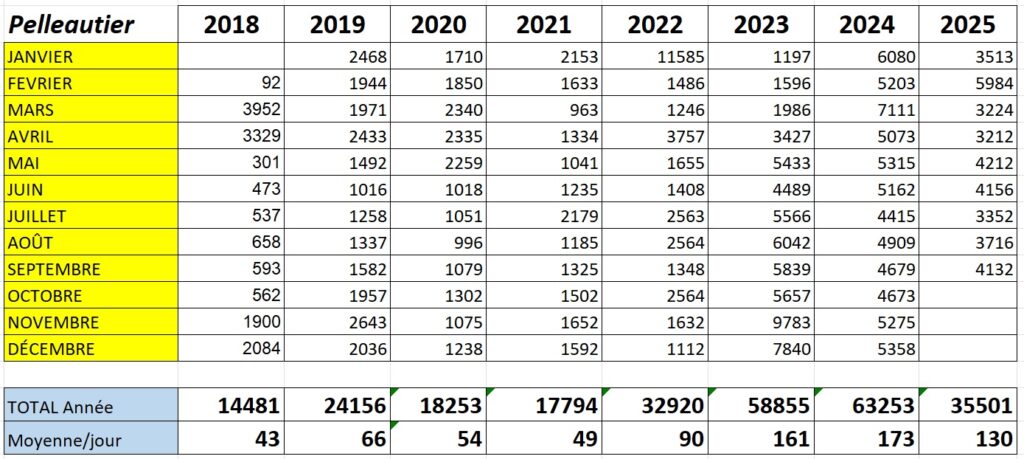 Le record annuel a été battu en 2024 avec 63253 visites, soit une moyenne journalière de 173 visites.